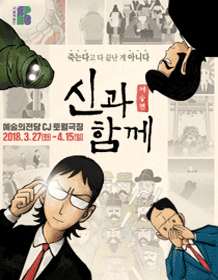 Along with the Gods: The Afterworld (신과 함께_저승편) is a Korean original musical based on Joo Ho-min’s webtoon, exploring justice, morality, and human life through trials in the afterlife. Premiered in 2015, it became a major repertory production of the Seoul Performing Arts Company.