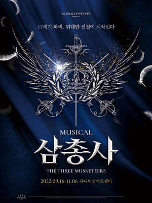 The Three Musketeers (삼총사) is a Korean licensed adaptation of the Czech musical based on Alexandre Dumas’ novel, premiering in 2009 and running recurrently through 2022. The production later toured Japan and Taiwan with Korean casts, contributing to the spread of Korean musical exports in Asia.